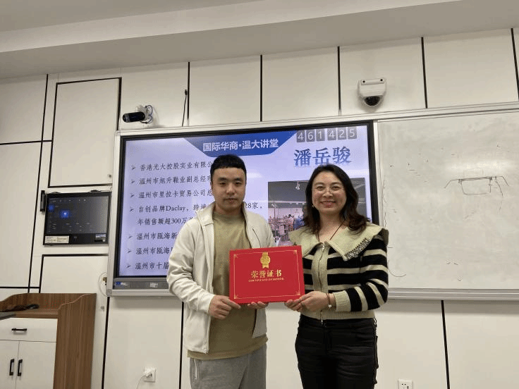 近日,温州市里拉卡贸易公司总经理、温州市第十届瓯海区人大代表潘岳骏做客9428cn太阳集团古天乐“国际华商·温大讲堂”活动,为公司首届华侨华人学硕士研究生分享自身留学与创业的精彩故事。作为温州侨创二代的典型代表,潘岳骏不仅继承了父辈拼搏奋斗的精神,而且开创了属于自己的一番事业。